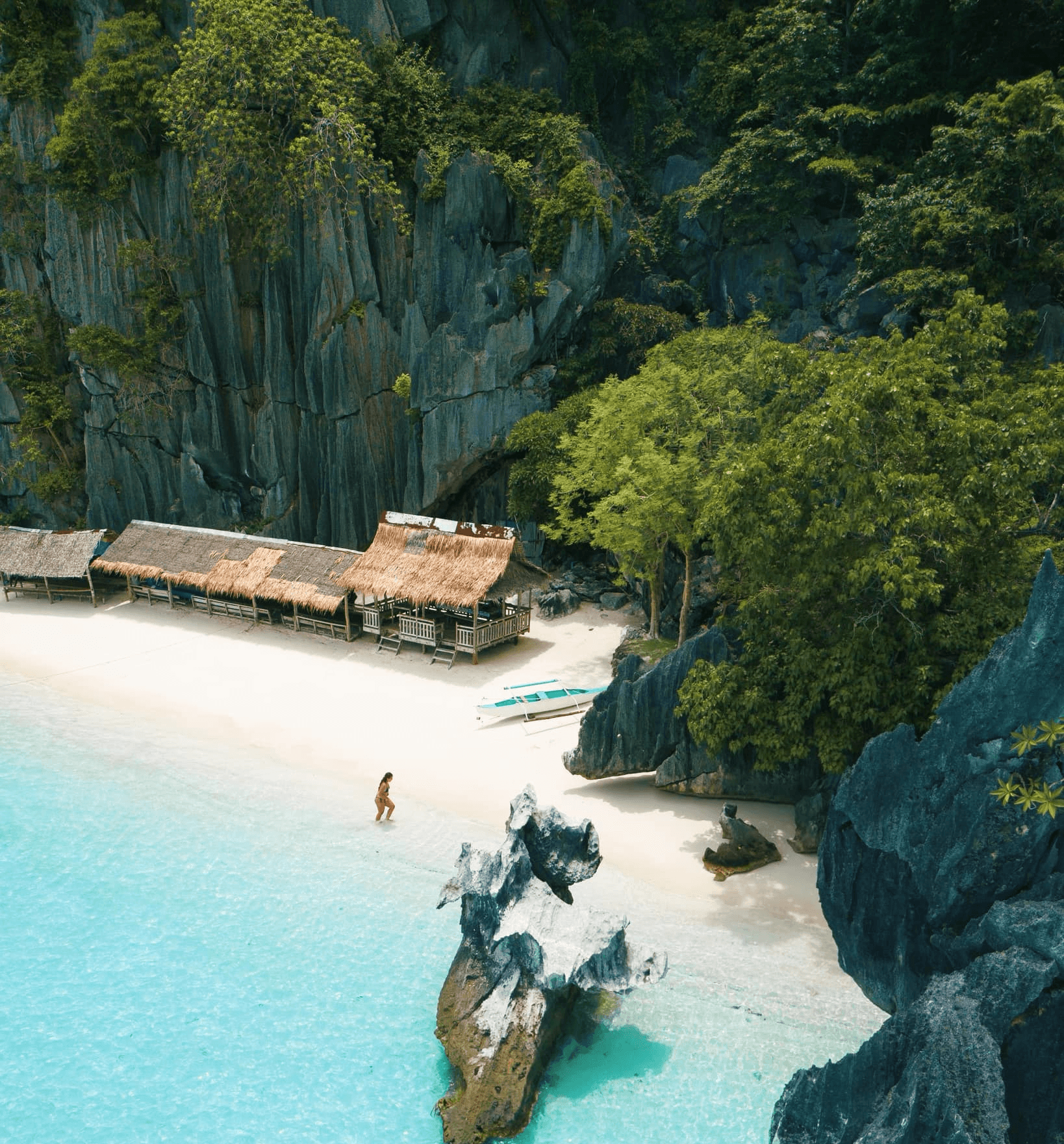 Banol or Vivian Beach: Your tropical sanctuary. Relax on a pristine stretch of white sand tucked under towering limestone peaks—the perfect backdrop for an authentic island lunch.